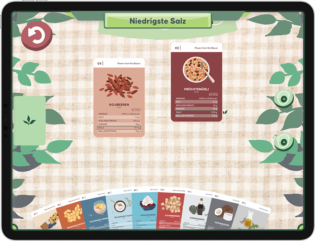 Bei dem digitalen Vegan Quartett werden Gegenspieler*innen durch den Computer ersetzt, deshalb überlegten wir uns ein System, nachdem der Computer seine Karten realistisch – will heißen klug, aber nicht unmenschlich klug – spielt.