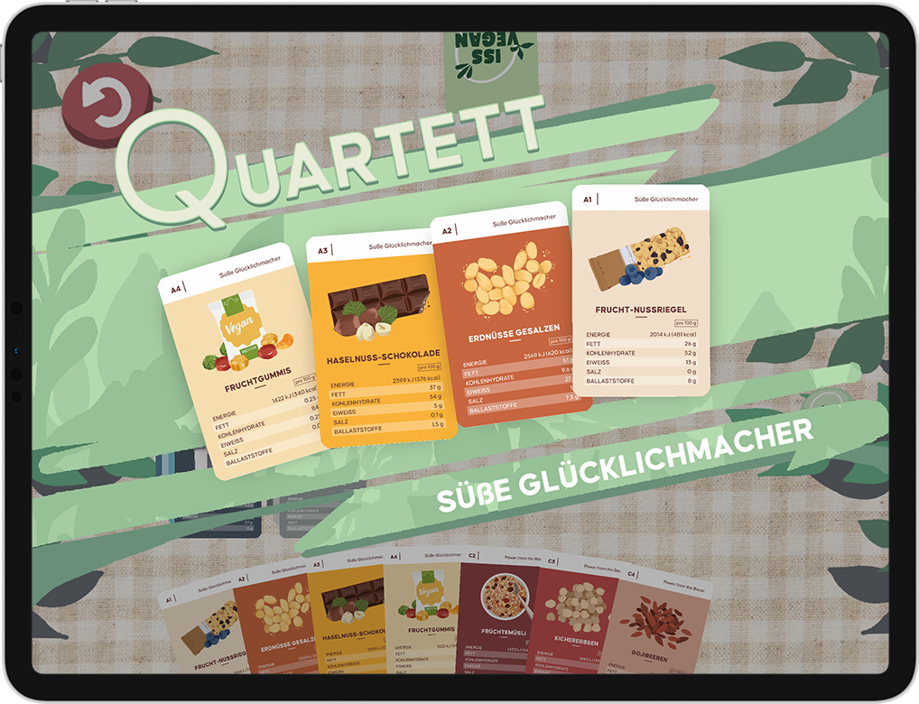 Vegan – aber wie? Das Vegan Quartett von Chefs Culinar ermöglicht es spielerisch die gesunde Welt der veganen Küche kennenzulernen und Rezeptideen zu sammeln. Gemeinsam mit TVN entwickelten wir für Chefs Culinar eine iOS Anwendung fürs iPad, die es ermöglicht das Kartenspiel überall zu genießen und das eigene Wissen im Spiel gegen den Computer zu testen.