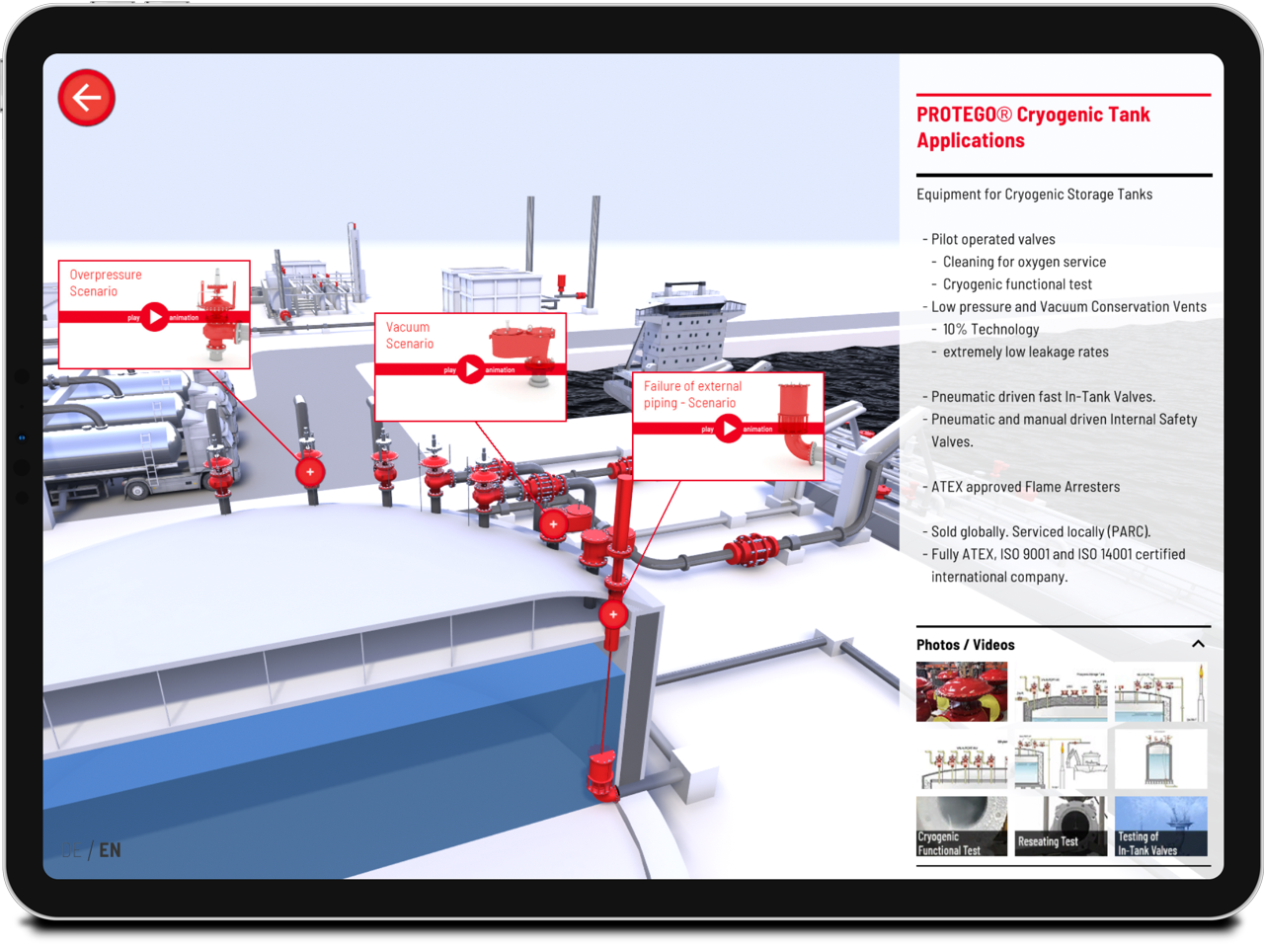 Zusammen mit Quermedia entwickelten wir eine Verkaufsapp für deren Kunden Protego, welcher als führender Hersteller für Flammensperren und Tankventile agiert. Die Anwendung veranschaulicht das Produktportfolio des Kunden durch für das Verkaufsgespräch aufbereitete und hilfreiche Beispiele.